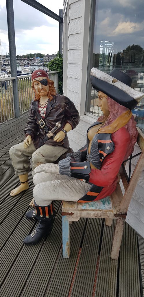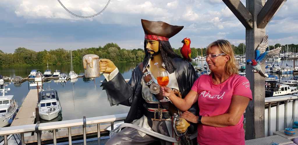 Sind hier im Erholungsgebiet de Goude Ham und wenn das Wetter etwas wärmer wäre, würde ich auch gerne in den See springen. Stattdessen machen wir es uns in der Piratenbar gemütlich, die sich auf einer gemütlichen Dachterasse befindet.