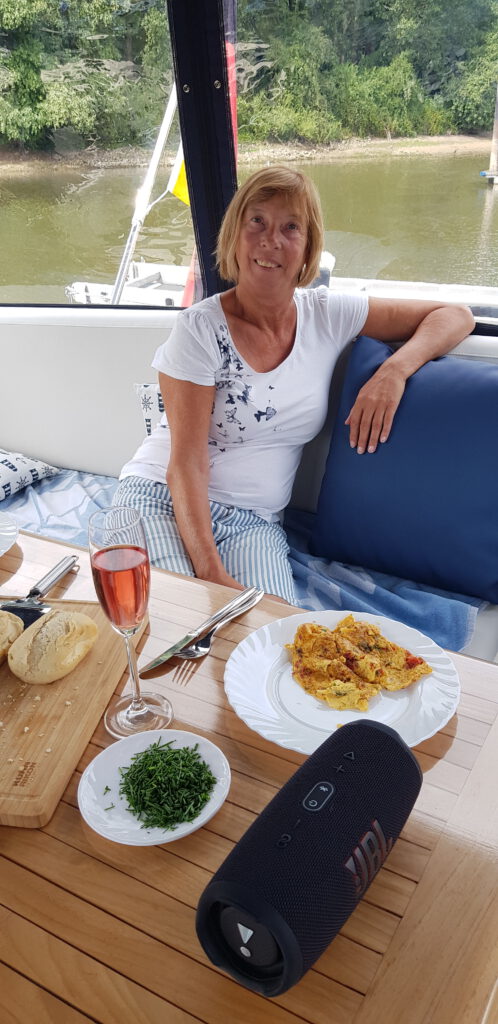 Der Hafen liegt zentral zur Stadt, und AH + CooP erreicht man fußläufig in 5 min. Das einzig störende an dem Hafen ist, das gegenüber, im Wald versteckt, eine Schuttabladehalde sein muss. Zumindest lassen die metallischen Geräusche darauf schließen. So, nach dem Anlegen gibt es dann erstmal ein Geburtstagssektfrühstück mit meinem heiß ersehnten Geschenk für unterwegs