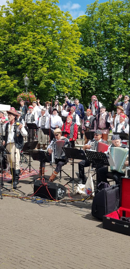Natürlich machen wir auch Fahrradtouren. Samstag war es angenehm kühl und so ging es nach Coevorden. Da war wohl gerade „Seemanstag“. Jedenfalls trat an jeder Ecke ein Shanty Chor auf. Sehr schöner Liegeplatz befindet sich hinter der George Vancouverbrücke