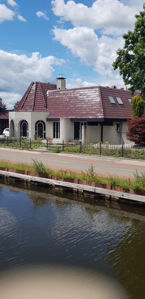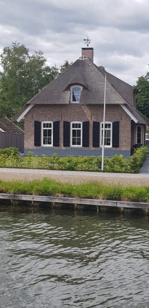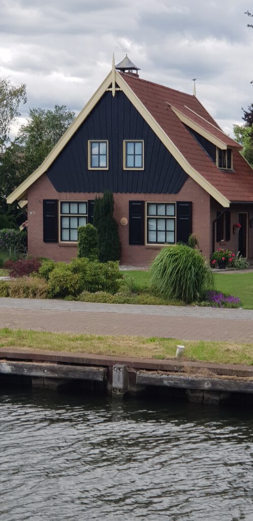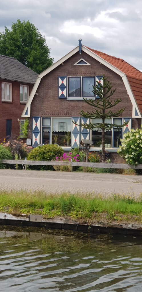 Ein Brückenwärter ist immer mit uns per Auto unterwegs und öffnet die Brücken. Klappt wunderbar bis um halb zwölf. Dann Ist Mittagspause – eigentlich. Heute macht der Brückenwärter schon um halb zwölf Pause. Unterwegs wieder eine Menge schöner Häuser.