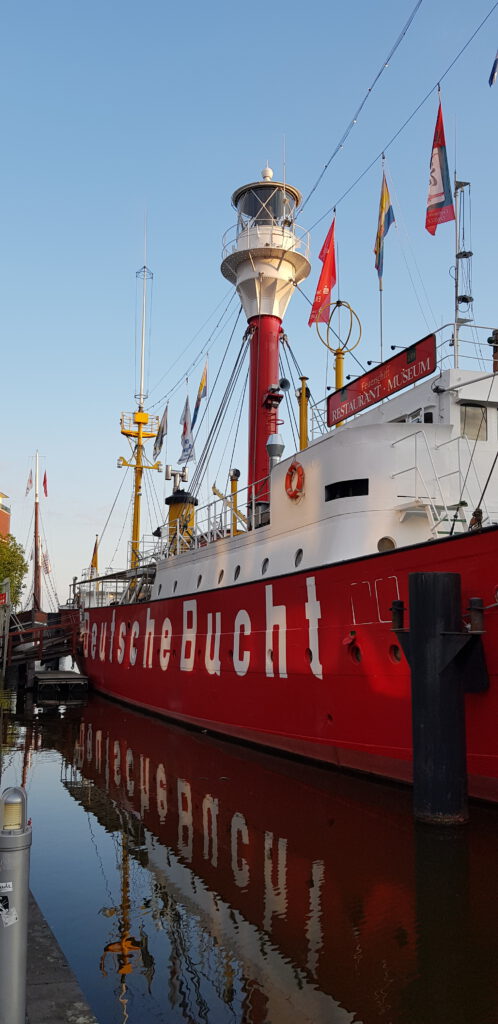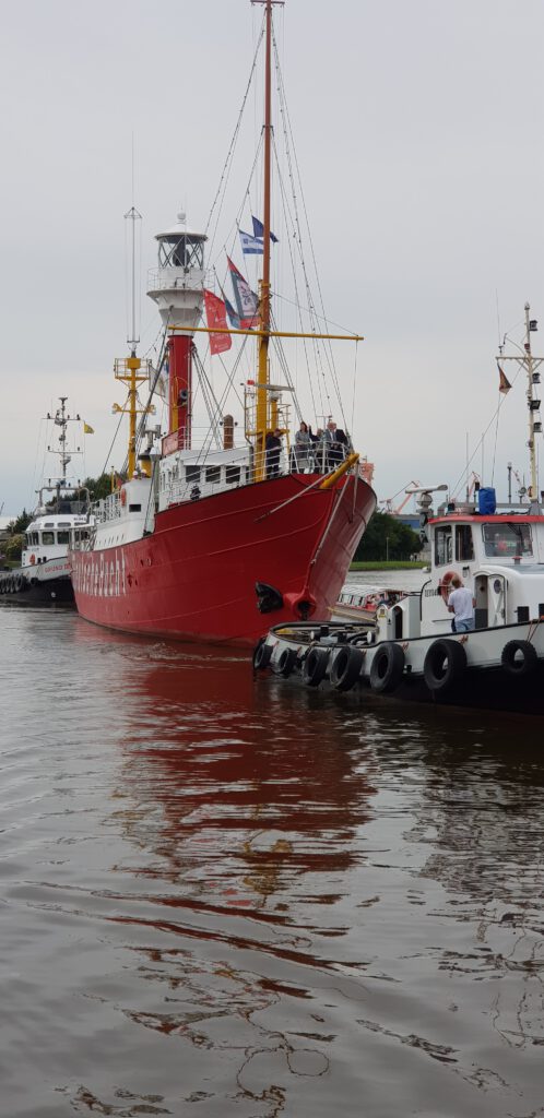 Nachmittags wird das Museums- und Restaurantschiff „Deutsche Bucht“ wieder reingeschleppt. Das war wohl zur Überholung in der Werft.