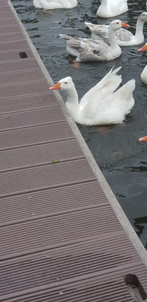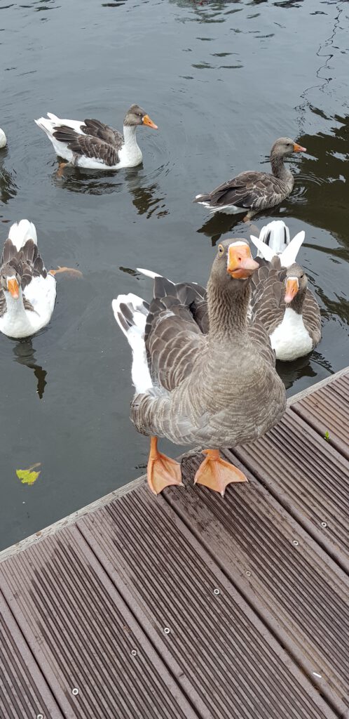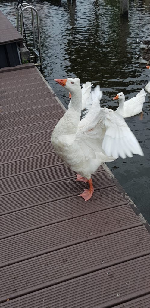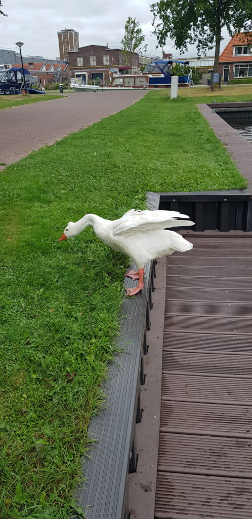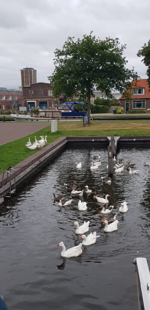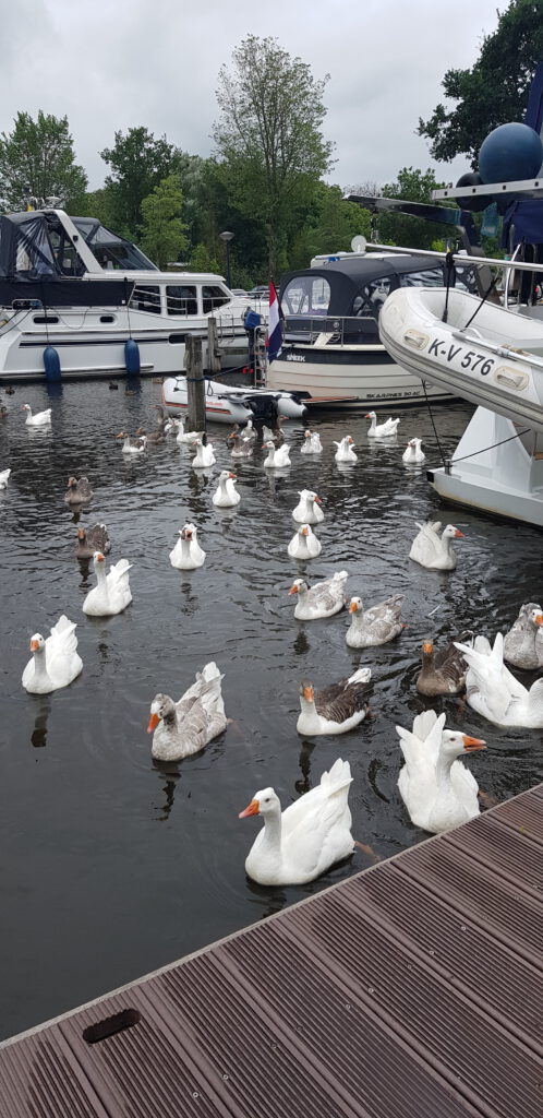 Wir sind früh genung angekommen, um im Inneren des Passantenhafen von Joure selber noch einen Steg für unsere Größe bekommen. Ansonsten gibt es beidseitig am Kanal Liegeplätze. Am Mittag konnten wir ein Spektakel der besonderen Art beobachten. Ein riesig großer Schwarm von Enten habe den Hafen überfallmäßig „geentert“.