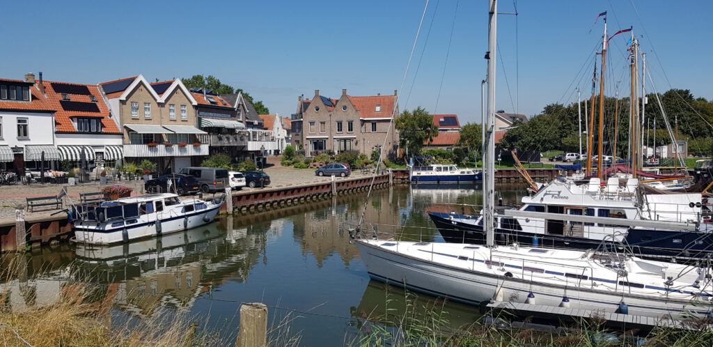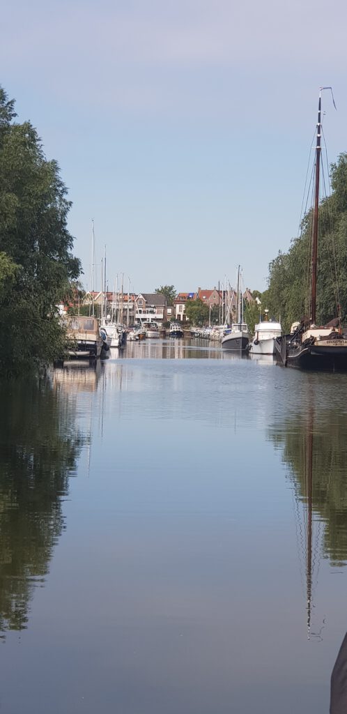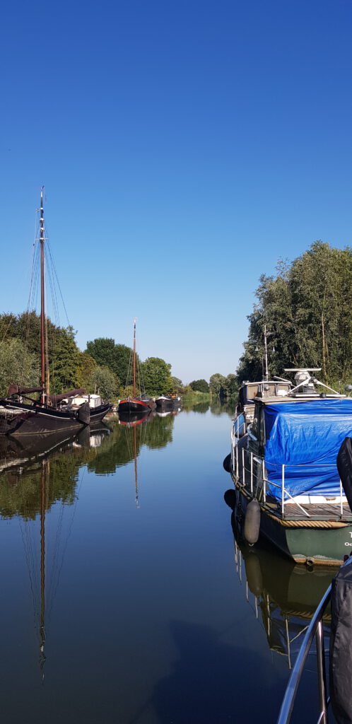 Auch in Oolgensplaat ist nichts los, aber wir wollen ja auch mal Häfen erkunden, die man sonst nicht so anläuft. Es geht erstmal durch einen kleinen Verbindungskanal und dann kommt man zu Längstege bds. Es sieht schon ziemlich voll aus und so schnappen wir uns direkt den einzig freien Liegeplatz. Vom Gefühl ist es wie an einer Insel, da neben uns direkt Bäume und Schilf sind.