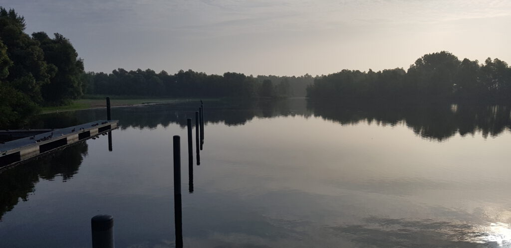 Sind wieder zurück im Biesbosch, sogar an alter Stelle. Die letzten 2 Schiffe fahren gegen Mittag weg und nun liegen wir herrlich allein in der Natur – so liebe ich es. Wunderschön zu schwimmen auf spiegelglattem Wasser, auch keine Motorboote, die stören würden.