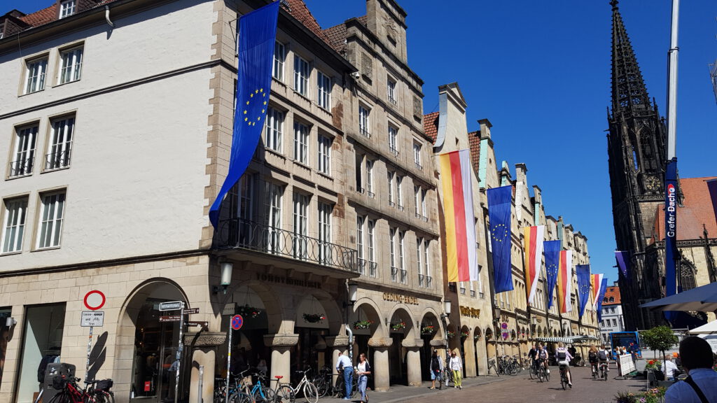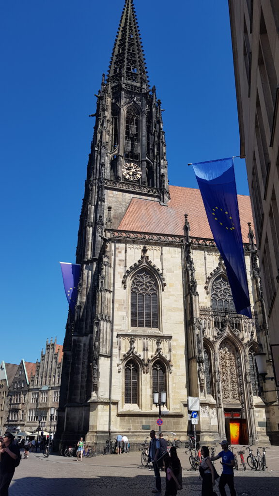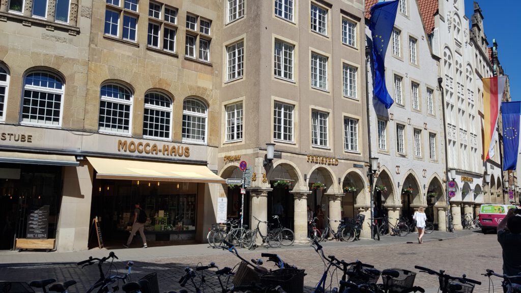 Nach dem Einkauf laufen wir in die Stadt, zu Fuß ca. 15-20 min. Münster ist immer wieder schön, man muss nur verschärft auf die Radfahrer aufpassen. Das erscheint mir schlimmer als in den Niederlanden